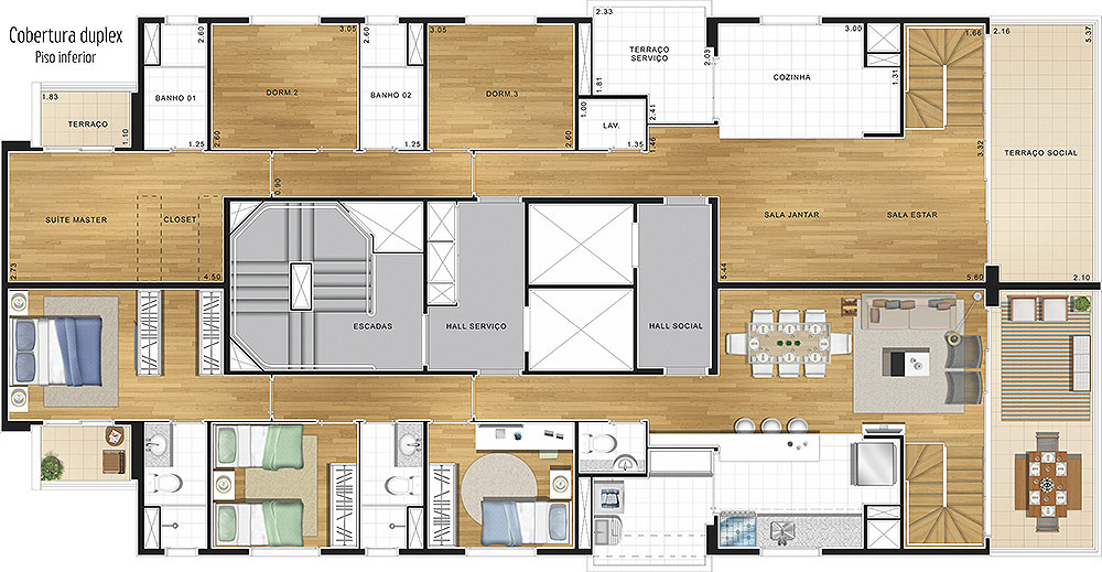 Cobertura Duplex com 221,50m² de área privativa e 4 vagas